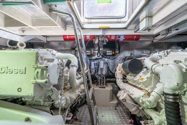 Accommodations include three well-appointed staterooms for up to six guests, highlighted by a full-beam master suite with en-suite head. Some notable features include a set of low hour MAN 900 Motors, Kohler 15.5 KW Generator, Bow & Stern Thrusters, Fusion/JL Audio Sound System and Garmin Electronics.
